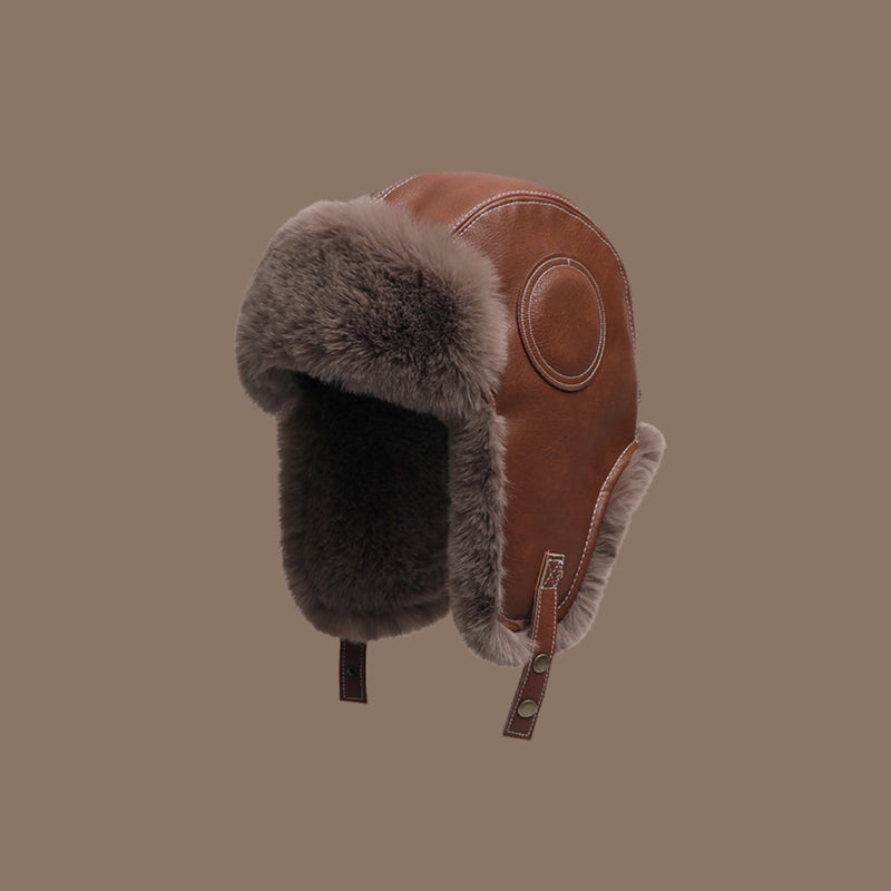 Hatmeo Leather Plush Warm Hat Outdoor Windproof Ear Protection Ski Hat